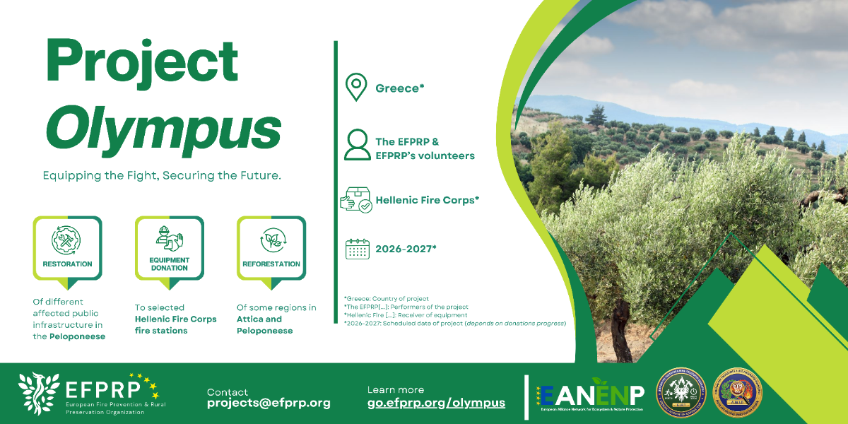 Project Olympus is an initiative by the European Fire Prevention & Rural Preservation Organization (EFPRP) designed to aid Greece in recovering from wildfires and improve preparedness for future ones.